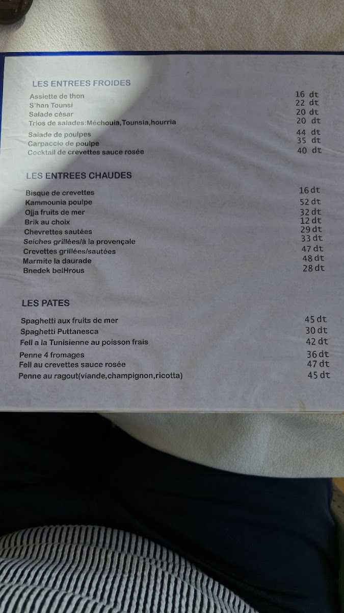“ We stopped here for lunch after a walk around the Caves of Disappointment. We were warmly greeted by the waiter, who was attentive and offered to translate the French menu for us and answer any questions we had about the food. We ordered turkey pasta, grilled chicken with vegetables, and a medium tuna brik. He brought over bread, harissa, mayo, and pickled vegetables. The bread was lovely, but unfortunately, the harissa was very bitter—we didn't enjoy this as much as the others we've had since being in Tunisia. The pasta was delicious, the chicken was very juicy and lemony, and the brik had a beautiful runny yolk. ”